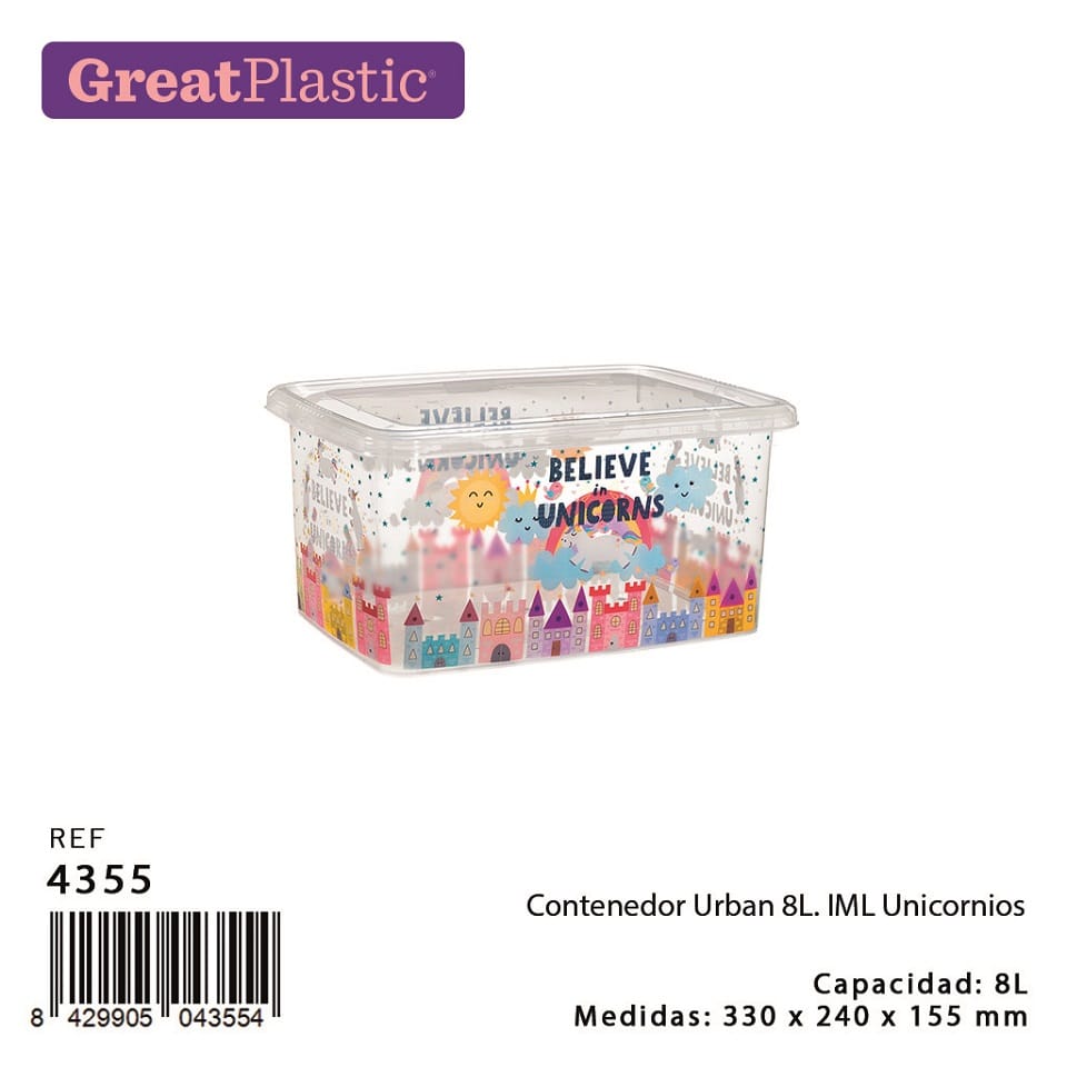 / DES. CAIXA PLASTICA C/ TAMPA 8 LT UNICORNIO